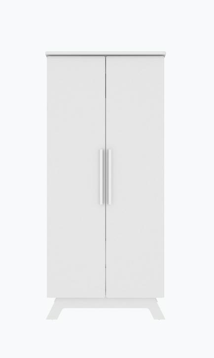 produzido em MDF/MDP com acabamento em pintura UV de alta resistência e Laca PU, o que garante uma maior durabilidade do produto. Com amplo espaço interno, possui 4 portas (com prateleiras e cabideiro) e 2 gavetas com corrediças metálicas. As portas possuem detalhes com vidro temperado incolor, puxadores redondos em polipropileno e, ainda, aplique em resina estilo provençal no rodaforro.
