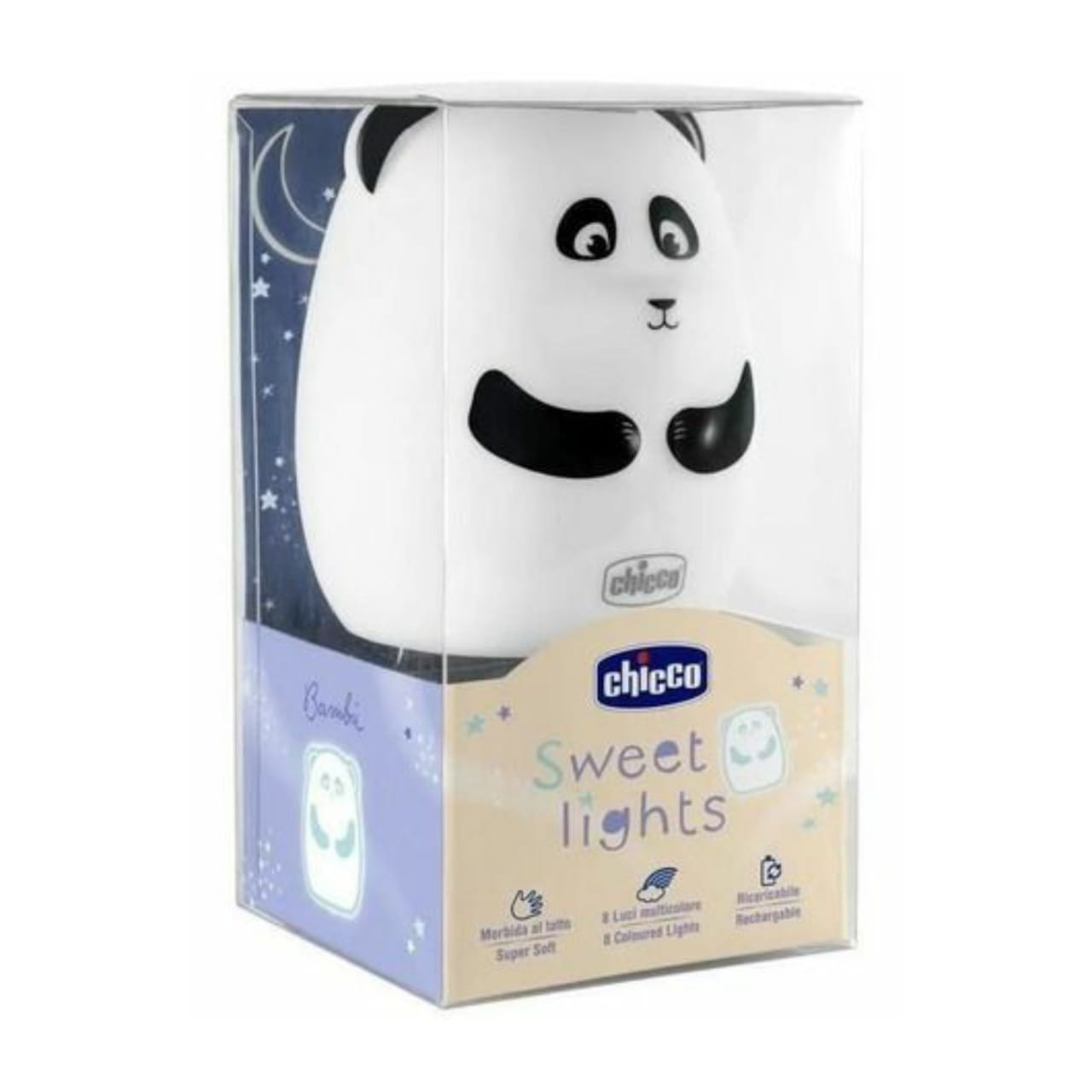 A Luz Noturna Recarregável da Chicco é a companheira ideal do seu bebê nas horas do soninho. As luzes de LED mudam as cores criando ambientes mágicos e que acalmam. Dispensa o uso de pilhas e é recarregável.